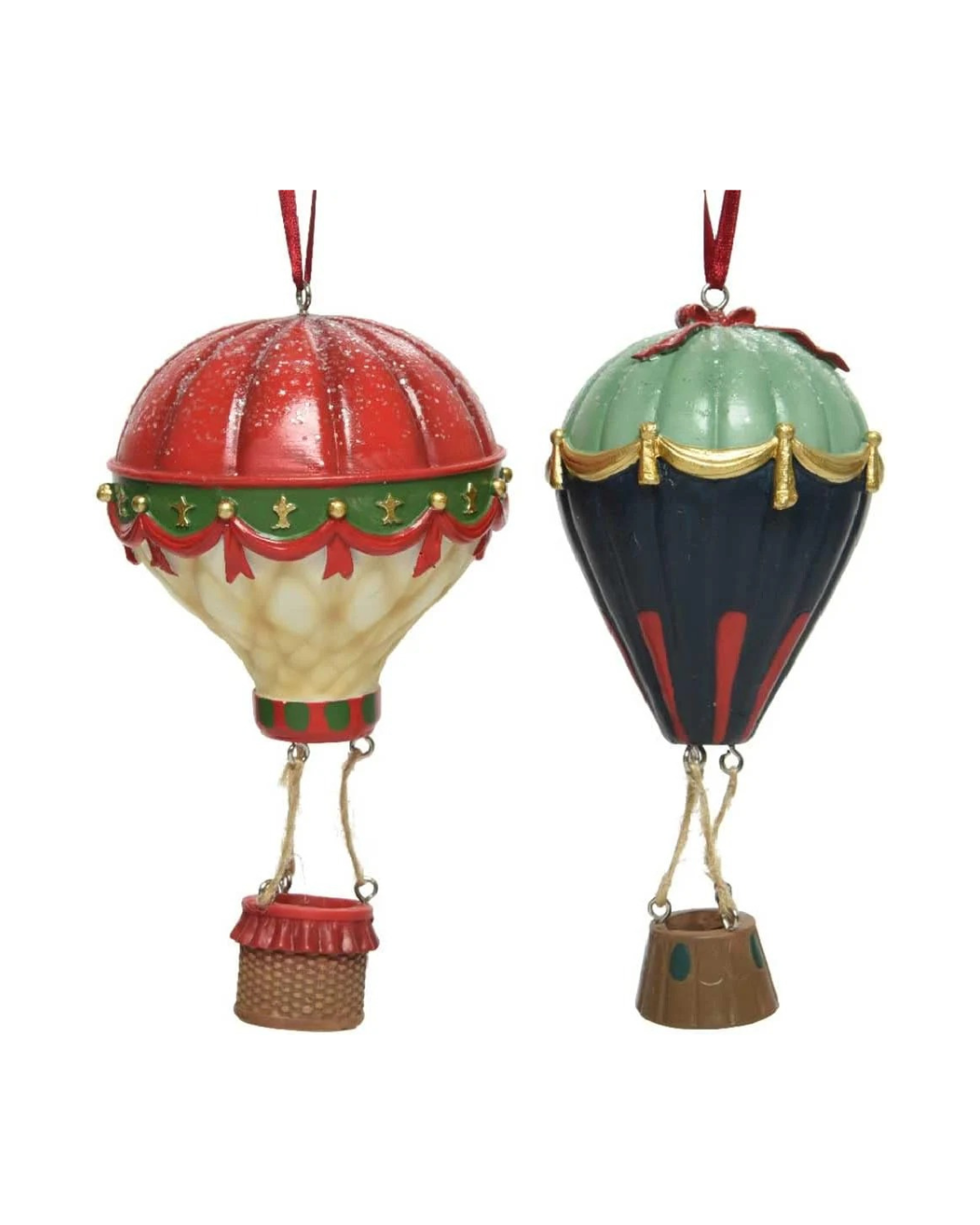 Red or blue hot air balloon pendant with glitter Dimensions: 28x28x45 cm approx. Material: polyresin Available in two colours The price refers to a single piece. At the time of purchase the product will be sent according to availability. Originality and attention to detail have always distinguished Kaemingk decorations, always guaranteeing an exclusive result.